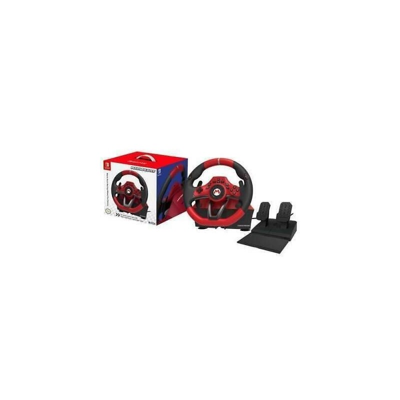 Volante diseñado para jugar con Nintendo Switch y Switch OLED. Dispone de tres niveles de sensibilidad ajustables con un giro de 180º, levas de cambio de marchas, 12 botones con la misma funcionalidad que los mandos de Nintendo Switch y una base con dos pedales (gas y freno).